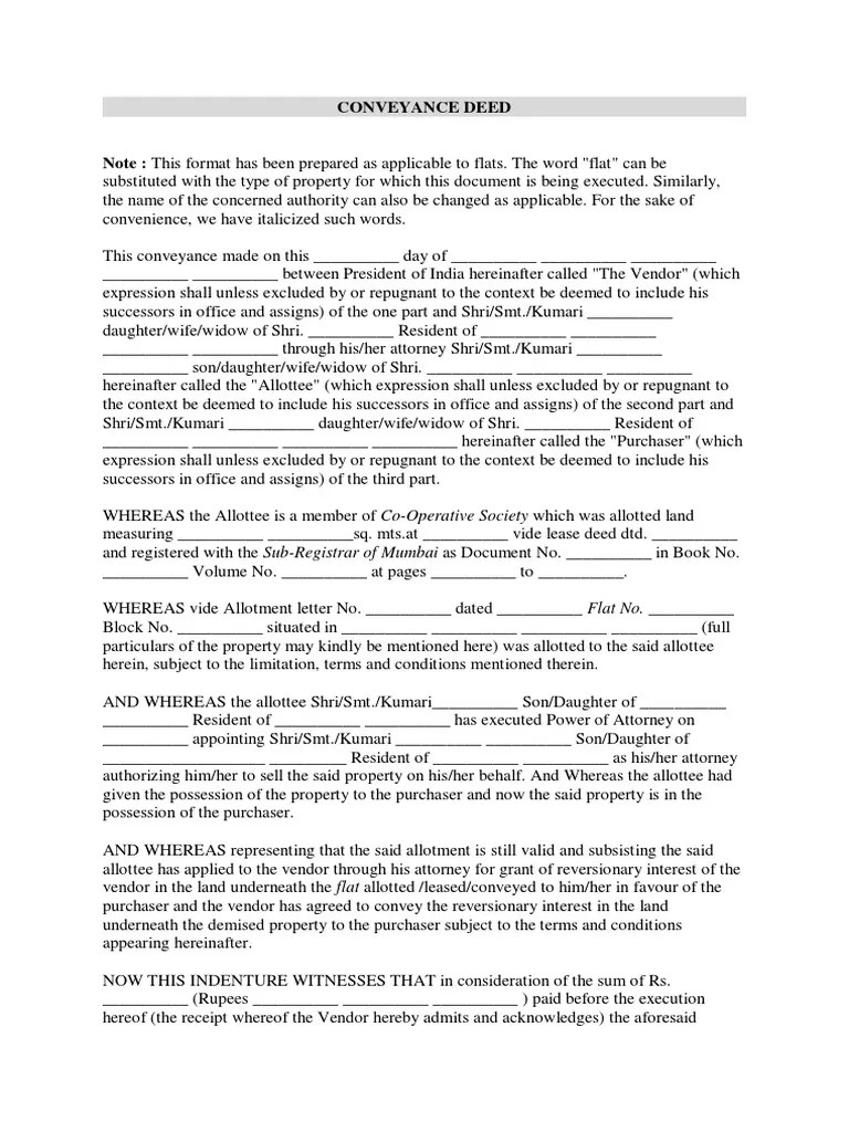 This deed of conveyance is made at. Immediate download blank real estate deed forms. A deed conveys the ownership of property from a seller (grantor) to a buyer (grantee). After the deed is completed, it is recorded in the local registry of deeds. Look no further than our deed of conveyance template!